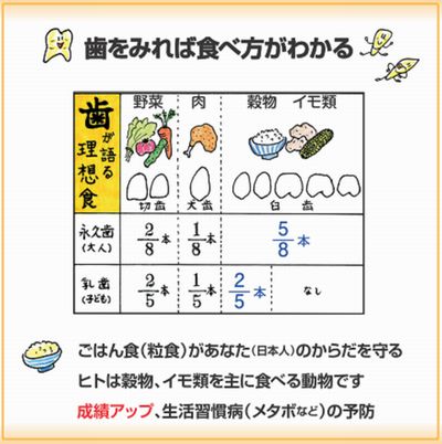 やはり、脂質を過剰に摂取しないことは、日本人の健康を守るうえで大切なことであると考えられます。(参考:琉球大学医学部等々力英美准教授らの研究「チャンプルースタディー」) 学校給食を考える 私が小学生の頃(昭和38年~44年)は、学校給食はすべてパン食でしたが、朝食がパン食である家庭は、きわめて少なかったように思います。現在、学校給食は、米飯が増え、全国平均で週に約3回が米飯給食です。かわりに、朝食がパン食である家庭が、増え続けています。 例えば、明石市(週3回米飯給食)の児童数553名の某小学校の2008年の調査では、子どもたちの朝食は、53%がパン食、32%がごはん食、4%がごはん・パン食となっています。家で朝、パンを食べている子どもは、給食がパンの日は、一日3食のうち2回がパン食となります。これは、どう考えても異常です。学校給食のパン食は、遠くで生産された輸入小麦粉が材料であり、パンという遠くの食べ方です。土産土法からみても、週に何回も、パン食を朝昼一日2回も食べるなど、おかしいと思います。日本人の食の無国籍化、質の低下を招きます。 例えば、フランス人やドイツ人の子どもが、家庭での朝食にも、昼の学校での給食にもごはんとみそ汁を食べていたら、どうでしょうか。やはり変です。今の日本では、こうしたおかしな状況が続いています。 教育の一環である学校給食で、子どもたちにパン食を提供することの意味・必要性の有無を、今こそ再検討すべきではないでしょうか。日本の様々な状況を総合的に判断すれば、学校給食は、完全米飯に近づけていくべきだと思います。 伝統を大切にした生き方・食べ方が、私たちの健康と環境をを守ってくれている ということを決して忘れてはなりません。日本人は、ごはん・大豆中心食、欧米人はパン・肉・乳製品食で、お互いに、まねをするものではないのです。 【事例1:長野県上田市真田町】 かつて、飲酒・たばこ・いじめや不登校で荒れていた校区を、ごはん給食(完全米飯給食)と花壇作りで「非行ゼロの校区」に変えた。学力も向上し、全国学力テストでも子どもたちが平均点より高得点を取るようになった。1992年以降、その改革の中心となって活躍した元教育長の大塚貢氏は、今、全国各地から講演依頼を受けている。 【事例2:兵庫県川西市】 平成22年9月から、阪神圏で初めて、市内公立小学校・特別支援学校17校約9300名の学校給食の完全米飯化を実施した。主食がごはんとなり、おかずのメニューも豊富となり、子どもたちの食べ残しが減った。ごはんは、パンよりも腹持ちがいいので、子どもたちは、帰宅後も空腹感をあまり感じず、おやつもひかえめにでき、夕食をしっかり食べることができるようになった。(川西市歯科医師会は、完全米飯給食実施のために会全体で取り組み、その実現に大きく貢献している。) 学校歯科保健を考える 1、 現状・問題点の認識 ①学校歯科保健の現状 子どものむし歯は減り続けているが、子どもたちの体力の低下や心 身の異常が問題となっている→歯みがき・フッ素だけでは子どもた ちは元気にならない ②学校歯科医側の問題 健診を行うだけで精一杯?それ以外の目立った活動がまだ少ないのではないか? ③今、大切なことは 子どもたちが、自らの判断・選択と行動で、元気で健康な生き方 がきるようになるためには、何をどうするべきか、誰に何をどの ように伝えるべきか? ④健康観の確立 健康とは?健康な生き方とは何か?・・・問われて即答できるか 「木を見て森を見ず」ではなく「木も森も見る」視点に立つこと ⑤人類700万年、衣食住に関しての不変の原則とは 「近くのもの」で生きること・・・・身土不二 「近くのやり方」で生きること・・・気候・風土を大切に 2、改善・向上のための対策の考案 ① 子どもたち&保護者 ② 学校教職員、特に担任の先生・養護教諭&栄養教諭 ③ 学校医、学校歯科医、学校薬剤師 ④ 地域の方々 ⑤ 行政・教育委員会 お互いがつながり→顔と名前がわかる関係から始まる! 3、実行 ① 既存のプログラム・イベントの活用 給食だより・通信・新聞 ②いつでも、どこからでも、お呼びがかかったらすぐに行動できるように 資料の作成・まとめ、スライドの作成・修正に日々取り組み、 常にスタンバイの状態にしておくこと! メールでの学校歯科だよりの発信 過去の記事としては、スポーツドリンクに関すること、朝の歯みがきによるインフルエンザ予防効果、食育フェスタの開催案内、子どもの歯に関するおすすめホームページ紹介、などがありますが、最近は、発信ができていないので、もう少し頑張って記事を作ろうと思っています。 学校健診時のスライドショー- 学校健診時に、子どもたちが順番を待っている時間を活用しようと思い、資料に、解説をつけたスライドを1枚あたり15秒の自動送りにして、スライドショーを上映しています。1分で4枚、15分で60枚、これを2回上映して30分となります。保健室のコーナーで健診