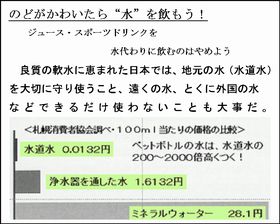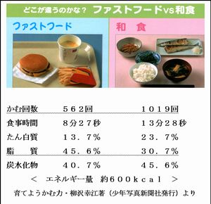 むし歯予防の第一は 歯みがき&フロス そして何よりも 食生活 甘いものの量よりも 食事と食事の間をあける 夕食前の1時間に飲食はしない ではないかと思います。 これなら、小学生でも、理解して自分で注意することが できますよね。 2件、サイトを紹介します @埼玉の歯科医師黒沢先生のの体験報告です 「夕飯前の 1時間に飲食させない」ようにすることです。これだけで、むし歯は激減します。・・・とのことですが、どうでしょうか。 http://www8.ocn.ne.jp/~f-and-h/kyusyoku/serial/konna/other2_1.html http://www8.ocn.ne.jp/~f-and-h/kyusyoku/serial/konna/other2_2.html A浪歯学術・メールだよりで紹介した俵本寛志先生のビーバー小児歯科のHPです。 33年の小児歯科開業歴があり、その経験から来る発言には とても説得力があると思いますが、いかがでしょうか。 http://hw001.gate01.com/bv-dent/oyatunoryou.htm http://hw001.gate01.com/bv-dent/yobouarekore.htm 【ビーバ小児歯科HPより】 a.. 低年齢でむし歯のない時期から、むし歯の予防をしようとする患者さんが 多かった。 b.. むし歯ができて来院された方でも、その後むし歯予防に努力された。 c.. 初診のときや定期健診で来院されたとき、食生活の相談や指導を こまめに行ってきた。 d.. 定期健診ごとに、子どものお口の中を丁寧にチェックし、歯ブラシや デンタルフロスの使い方のお稽古も、繰り返し行ってきた。(歯が弱って いる、磨き残しがあるなどの記録をきちんと残し、次回の参考にしている) e.. 当院の子どもたちは、デンタルフロスをよく使用していることも、他院との むし歯の差と考えられる。 f.. 子どもたちの環境変化にも、細かく対応する体制を整えてきた。 (お母さんの妊娠、兄や姉が習い事を始めた) g.. 当院から患者さんに提供する情報や指導は、実現可能で実践的な ものにする努力をした。 例えば、低年齢の子どもの歯磨きは、夜より昼間に重きを置くようにする。なぜなら、夜眠くなると子どもはぐずりやすいし、夜の明かりでは歯の汚れはよく見えない。その結果歯もきれいに磨けなくなる。歯をきれいに磨いてあげたいのなら、天気のいい昼間の窓際が一番条件がいいことがわかるはずです。お母さんがお勤めをしている家庭も、私の患者さんには大勢います。そのような方なら、お仕事が休みの日だけでもかまわないのです。 【 浪歯学術・メールだより 1006号 】 編集人 豊田裕章 ビーバー小児歯科ホームページ お母さんやお父さんに役立つ小児歯科辞典 11月に、平野区歯科医師会主催、一般区民の方々を対象にした講演会で、歯科と食育についての講演を依頼されていますが・・・ その時に、もう1人の講師として参加される、豊中市のビーバー小児歯科、俵本寛志先生のホームページの、内容が本当に素晴らしいので、先生方にも閲覧をおすすめします。効果的な虫歯予防の方法や、飲み方・食べ方など食生活のありかたについてなど、正しい子育てについて、すぐに役立つ情報が満載です! 学校歯科関係の先生方には、特におすすめです。 詳しくは http://hw001.gate01.com/bv-dent/ を ご覧下さい。 ********************** 『ビーバー小児歯科ホームページ・お母さんやお父さんに 役立つ小児歯科辞典』より 当院の健診患者さんのむし歯予防成果が、さらに大きく向上しました!!12歳児のむし歯の本数が、0.5本まで抑えることが出来ました。15歳でもわずか1.6本のむし歯しかできていません。(平成16年 日本小児歯科学会近畿地方会で発表。)・・・ 固いもん食べたら、あご大きくなるん? 硬いもんてどんなもんあるかな? するめにコンブ、それから ・・・ そんなんばっかり食べてられるか?そんなことしたら顎つぶれるで! などなど・・・・ ********************** 【 浪歯学術・メールだより 1003号 】 発 行 浪速区歯科医師会 発行人 長谷川貴一 編集人 豊田裕章 経口補液とスポーツドリンク、 ORS(Oral Rehydration Solusion) & OS-1 について 5月21日夜に、浪歯役員会がありましたが、閉会後、数人の先生方との雑談の中で 風邪→ひどい下痢症状→経口補液→ORS&OS-1のことが話題になりました。 スポーツドリンクが、むし歯の大敵だと認識はされていますが、スポーツドリンクの問題点、下痢の時になぜ適していないのか、脱水時の経口補液のポイントはどこか、など、そして、ORSそのものの存在など、まだ十分に先生方に認知されていません。子どもさんの緊急時の脱水対策に、スポーツドリンクを飲ませているとの声も聞きました。 そこで、1003号では、歯科医の先生方に、総合的に、スポーツドリンクや経口補液についてきちんとした理解をしていただきたく、情報をまとめてみました。 ぜひ、ご参照ください。 1、ORSとOS-1について 基本事項は、ウィキペディアで十分でないかと 思います。 ORSは http://ja.wikipedia.org/wiki/%E7%B5%8C%E5%8F%A3% E8%A3%9C%E6%B0%B4%E5%A1%A9 OS-1は http://ja.wikipedia.org/wiki/OS-1 OS1に記事の中には、以下のような気になる記事もあり、 注意が必要です。 『ポカリスエットをはじめとするスポーツドリンクは日常生活やスポ