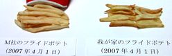 2、危険なトランス脂肪酸 トランス脂肪酸とは、マーガリンなどを製造する際に、液体状の(植物性の)不飽和脂肪酸に水素を添加して、固体状の飽和脂肪酸に変化させる過程で生じる人工の不飽和脂肪酸で、半硬化油とも記されます。 ショートニング、加工油脂という名で油で揚げたスナック菓子、サラダオイル、マヨネーズ、レトルトカレー、コーヒーフレッシュ、フライドポテトなど多くの加工食品に含まれています。 これは構造式からいうとトランス型という自然界には存在しない脂肪酸で、代謝・分解されにくく、体の中に残ってしまうもので、プラスチック食品という別名があるぐらいです。 たとえば、マーガリンを常温でおいても、1年たっても変化せず、カビもはえません。アリもゴキブリも寄り付きません。植物油は健康にいい、だからマーガリンはバターより体にいいと思っていませんか。とんでもない話です。 医師で元気で長生き研究所長の昇幹夫先生が自宅で実験された結果が、次の写真です。 普通の植物油で作った自家製のフライドポテトは、3日目からカビが生え始め、1ヶ月で白く黒くカビだらけになりました。それに対して、有名なM社のフライドポテトは、1ヶ月過ぎてもきれいなままです。どちらが人の体に安心でしょうか!? *昇先生のホームページの、健康むらネットの報告記事の最後の方で紹介されています。参照はこちら トランス脂肪酸は、欧米では法律で禁止されたり量を規制されたり、表示が義務付けられたり、メーカーが自粛したりしていますが、日本では野放しです。厚生省から特別保健用食品の許可を受けているK社のエコナオイルには5.2%のトランス脂肪酸が含まれているそうです。これは普通の植物油の倍以上の含有率です。 (今この5,2%は、改善されたのでしょうか?) 食生活が欧米化・外食化・ファストフード化すれば、脂質の摂取量は増加し、トランス脂肪酸の摂取量が増加しますので、警戒が必要です。 総括すると、歯周病対策には、末梢を循環する血液の質・量の不足や劣化、血管壁の劣化・老化対策としての、食生活指導が不可欠です。 さらには、禁煙指導、ストレスのコントロールも同時に大切なのです。 (次号に続く) [参考] * 『ドクター江部の糖尿病徒然日記』 高雄病院理事長江部康二先生ブログ * 『太ったインディアンの警告』 エリコ・ロウ著・NHK出版 * 『病気がイヤなら「油」を変えなさい!』 山田豊文著・河出書房新社 |